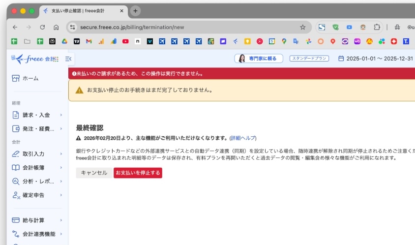 freeeで解約しようとしたんですが、